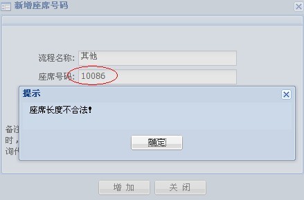1.1新增座席號(hào)碼(普通一號(hào)通模式)單擊座席設(shè)置,彈出頁(yè)面,單擊新增座席按鈕,彈出、設(shè)置頁(yè)面,輸入座席號(hào)碼,單擊增加按鈕,彈出成功提示框后,單擊確定,完成新增操作,如下