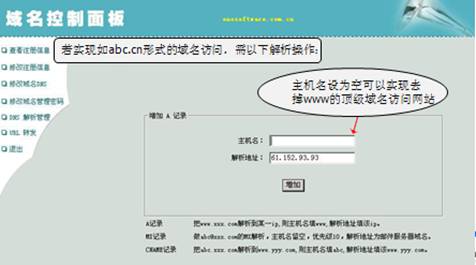 ![]() 如想要實(shí)現(xiàn)去掉www.的一級(jí)域名亦可訪(fǎng)問(wèn)網(wǎng)站,除了要在空間里綁定不加www.的域名外,還要解析,主機(jī)名為空。