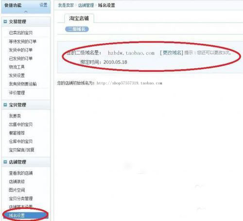 很多人會(huì)認(rèn)為淘寶自動(dòng)生成的店鋪鏈接過(guò)于長(zhǎng)了,很難讓人記住。那么淘寶有一個(gè)二級(jí)域名可以設(shè)置,讓人更容易記住。 淘寶網(wǎng)店二級(jí)域名是指比如:http://xxxxx.taobao.com,這樣的域名更容易讓人家記住,而且方便后續(xù)的訪問(wèn)和推廣。 1、首先登陸淘寶網(wǎng),進(jìn)入賣(mài)家中心,接下來(lái)在左邊的工具欄目會(huì)有域名設(shè)置,如下圖所示: